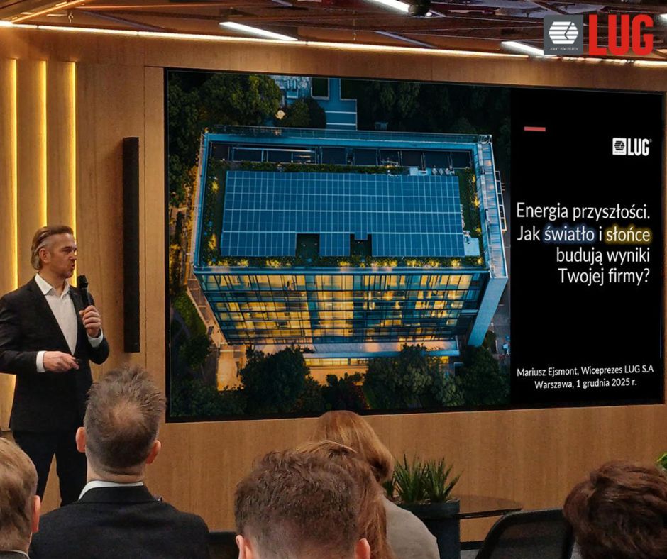 Wiceprezes i Dyrektor Techniczny LUG, Mariusz Ejsmont, wygłosił prelekcję pt. „Energia przyszłości. Jak światło i słońce budują wyniki Twojej firmy”.