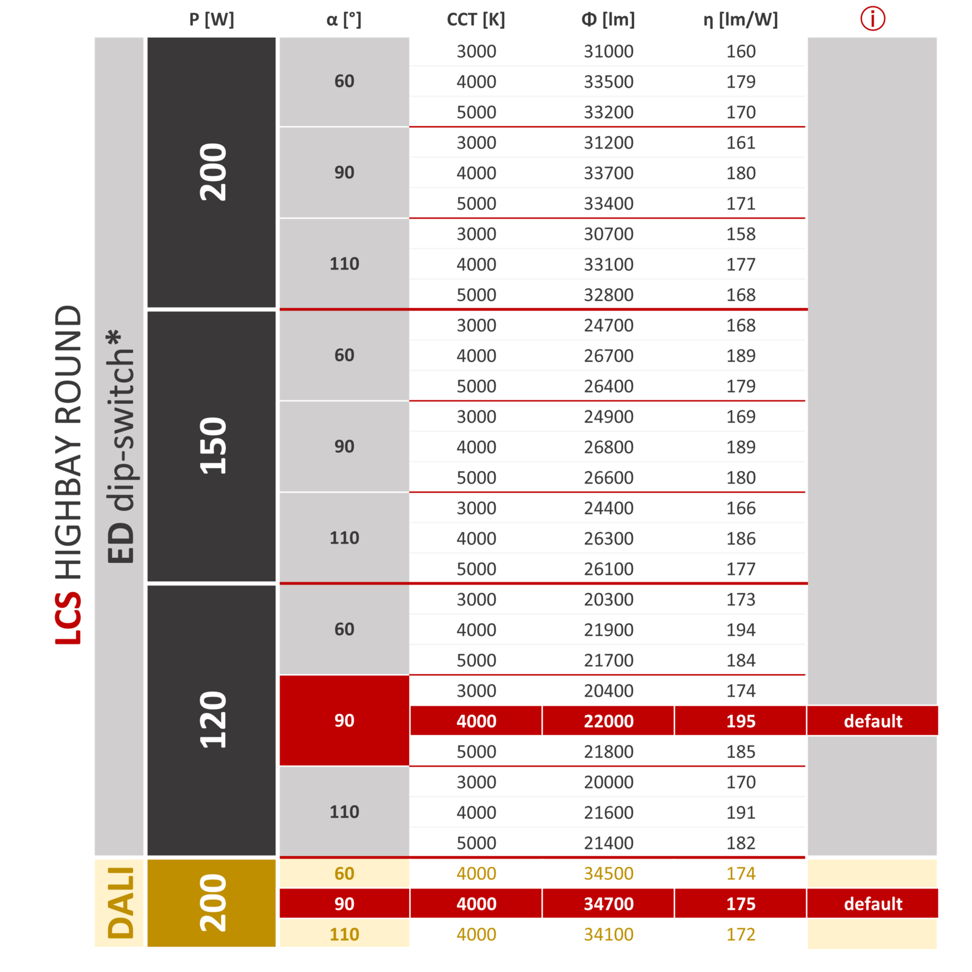 Wysoka skuteczność do 195 lm/W