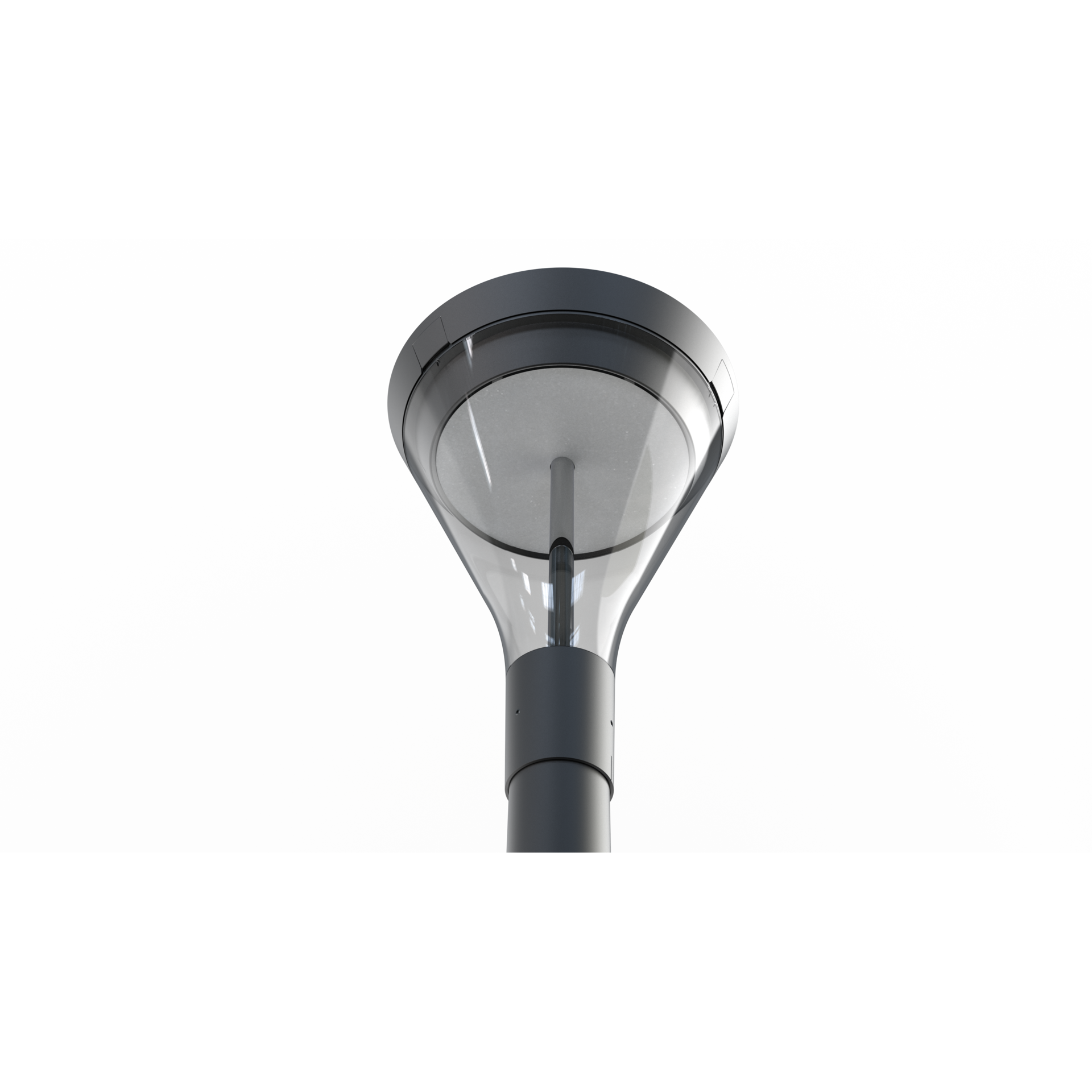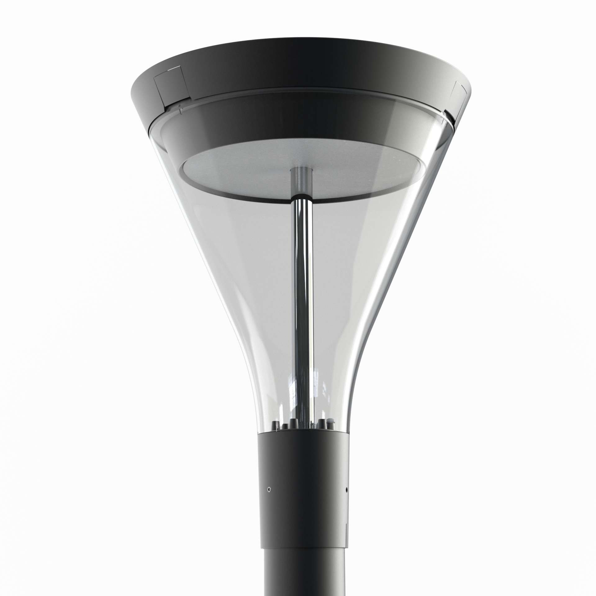Oprawa parkowa w nowoczesnej formie na źródła światła LED, z beznarzędziowym dostępem do komory zasilacza przy pomocy klipsów.